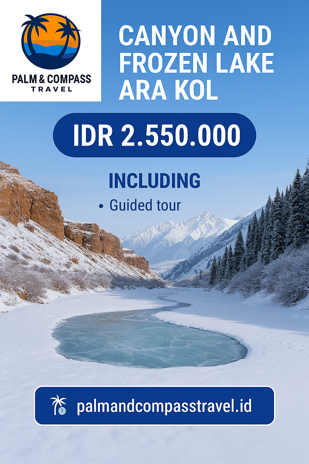Join us on an unforgettable adventure exploring the breathtaking landscapes of the Canyon and Frozen Lake Ara-Kol. For just $150 USD per person, this full-day tour promises an incredible experience filled with stunning sights and delightful local flavors.